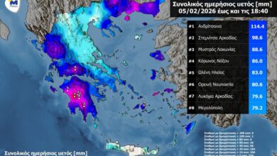 Κακοκαιρία: Στη Στεμνίτσα Αρκαδίας καταγράφηκαν τα μεγαλύτερα ύψη βροχής