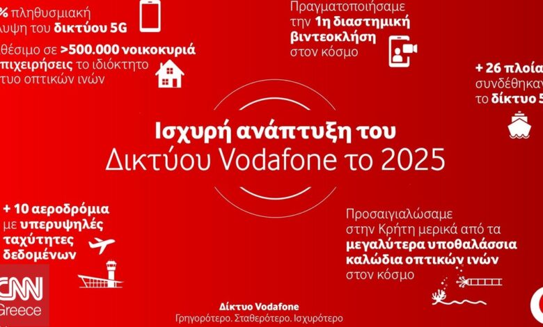 Το 2025 ήταν μια χρονιά γεμάτη εξελίξεις για το δίκτυο της Vodafone, με επενδύσεις που έφεραν πιο γρήγορο internet και καλύτερη κάλυψη σχεδόν παντού. Από πόλεις και νησιά μέχρι αεροδρόμια, μετρό και πλοία, η καθημερινή συνδεσιμότητα πέρασε σε άλλο επίπεδο, τόσο για τους κατοίκους όσο και για τους επισκέπτες της χώρας.