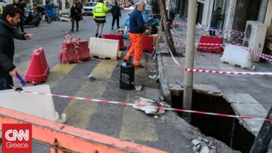 Καθίζηση οδοστρώματος στη βασιλέως Γεωργίου στο Παγκράτι – Παρασύρθηκε κολώνα φωτισμού