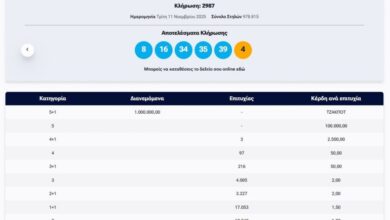 Πραγματοποιήθηκε το βράδυ της Τρίτης (11/11) η κλήρωση 2987 του Τζόκερ που μοιράζει στην πρώτη κατηγορία πάνω από 1 εκατ. ευρώ. Οι…