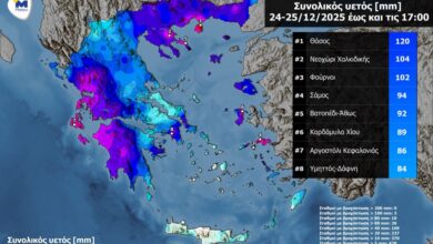 Σε Αιγαίο και Ιόνιο οι ισχυρότερες βροχές κατά τη διάρκεια των Χριστουγέννων