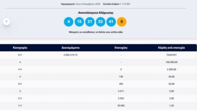 Πραγματοποιήθηκε το βράδυ της Τρίτης (4/11) η κλήρωση 2984 του Τζόκερ που μοιράζει στην πρώτη κατηγορία δύο εκατομμύρια ευρώ. Οι τυχεροί αριθμοί…