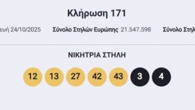Πραγματοποιήθηκε η σημερινή (24/10) κλήρωση 171 του Eurojackpot, το οποίο μοιράζει το ποσό των 17 εκατομμυρίων ευρώ. Οι αριθμοί που…