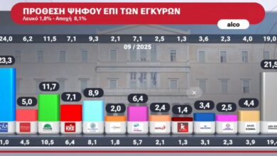 Δημοσκόπηση Alco: Πρώτη η ΝΔ – Εντυπωσιακά υψηλά ποσοστά για τους αναποφάσιστους
