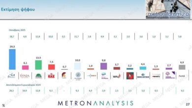 Δημοσκόπηση Metron Analysis: Προηγείται η ΝΔ – Η ακρίβεια Νο1 πρόβλημα για τους πολίτες