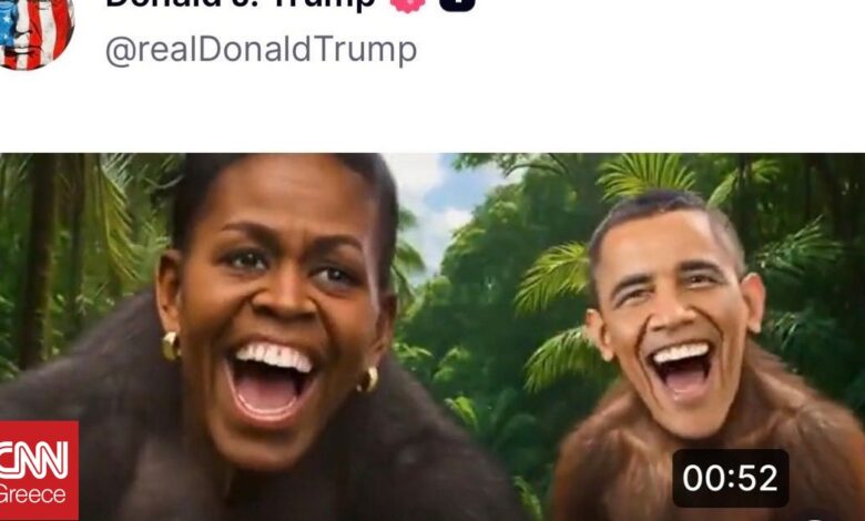 Ένα βίντεο που ανάρτησε Ντόναλντ Τραμπ στον λογαριασμό του στο Truth Social και δείχνει το ζέυγος Ομπάμα ως πιθήκους, έχει διαγραφεί, με το Λευκό Οίκο να κατηγορεί τώρα έναν υπάλληλο για την ανάρτηση.
