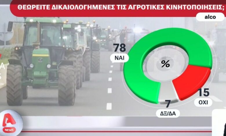 Δημοσκόπηση Alco: «Το δίκιο στους αγρότες» λένε 8 στους 10 – Τα ποσοστά ΝΔ και η άποψη για Τσίπρα