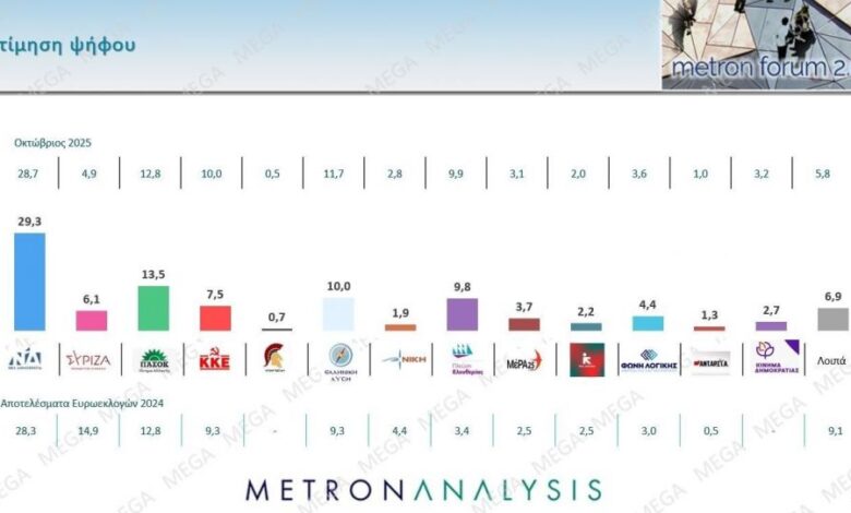 Δημοσκόπηση Metron Analysis: Προηγείται η ΝΔ – Η ακρίβεια Νο1 πρόβλημα για τους πολίτες