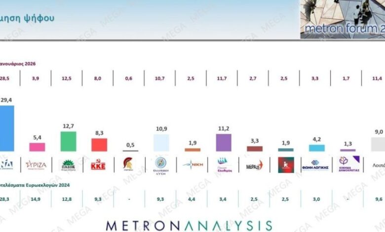 Δημοσκόπηση Metron Analysis: Στις 16,7 μονάδες η διαφορά ΝΔ-ΠΑΣΟΚ – Τι λένε για Τσίπρα, Καρυστιανού