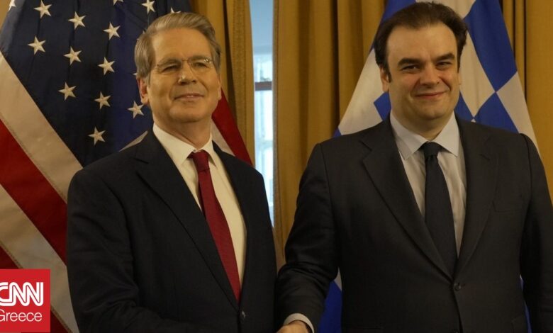 Ο υπουργός Οικονομικών, Κυριάκος Πιερρακάκης, συναντήθηκε σήμερα το πρωί (17/10) στην Ουάσιγκτον με τον υπουργό Οικονομικών των Ηνωμένων Πολιτειών, Σκοτ Μπέσεντ.