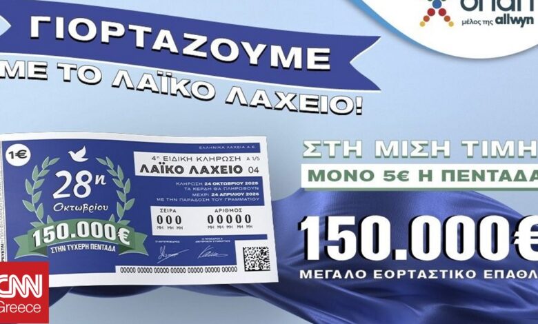 Εορταστικό έπαθλο 150.000 ευρώ από το Λαϊκό Λαχείο για την επέτειο της 28ης Οκτωβρίου