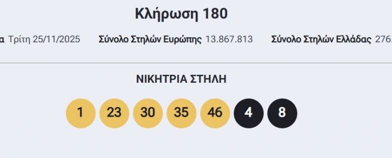 Eurojackpot: Αυτοί είναι οι τυχεροί αριθμοί της αποψινής (25/11) κλήρωσης