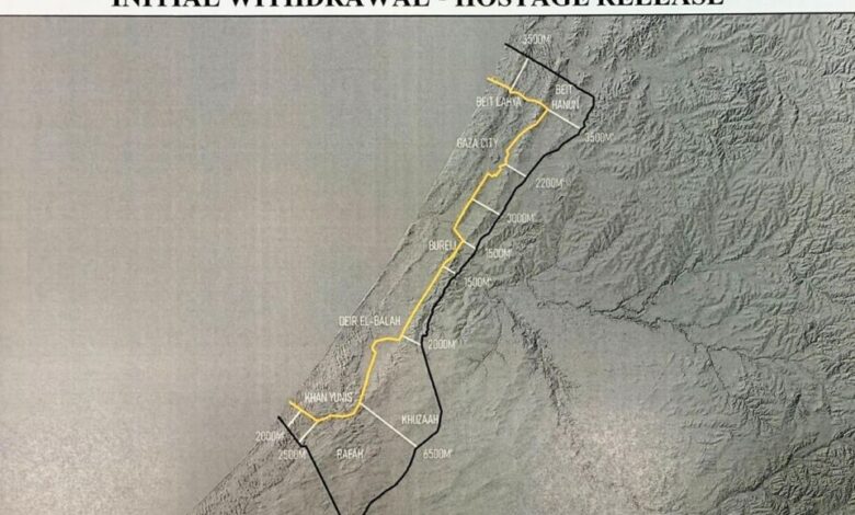 - Απόσυρση του Ισραήλ: Προβλέπεται επίσης η δημιουργία μιας «Διεθνούς Δύναμης Σταθεροποίησης (ISF)» που θα αναπτυχθεί στη Γάζα και θα εκπαιδεύσει «ελεγμένες παλαιστινιακές αστυνομικές δυνάμεις» στη Γάζα. Με αυτή τη δύναμη να έχει αναλάβει το ρόλο της, οι Ισραηλινές Αμυντικές Δυνάμεις (IDF) αναμένεται να αποσυρθούν από τη Γάζα. Το Ισραήλ δεν έχει ακόμη συμφωνήσει με αυτές τις διατάξεις και όπως έχει γίνει γνωστό, το 58% της Γάζας θα παραμείνει υπό ισραηλινή κατοχή.
