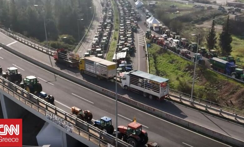 Η «θάλασσα» των τρακτέρ από ψηλά – Πώς κατέγραψε το drone του CNN Greece τα μπλόκα