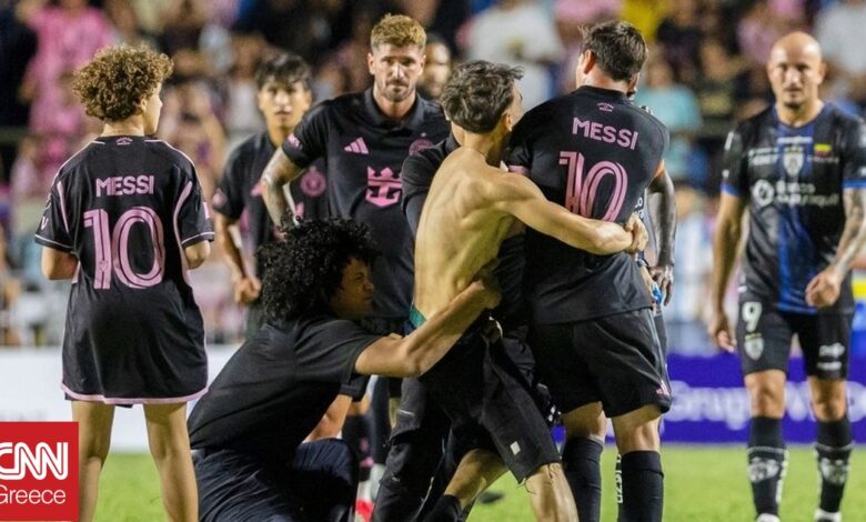 Ο Λιονέλ Μέσι ρίχθηκε στο… έδαφος από άνδρα ασφαλείας που προσπαθούσε να ακινητοποιήσει έναν ημίγυμνο φίλαθλο, λίγο πριν από το τέλος της φιλικής νίκης της Ίντερ Μαϊάμι με 2-1 επί της πρωταθλήτριας Ισημερινού Ιντεπεντιέντε ντελ Βάγε, στο Πουέρτο Ρίκο.