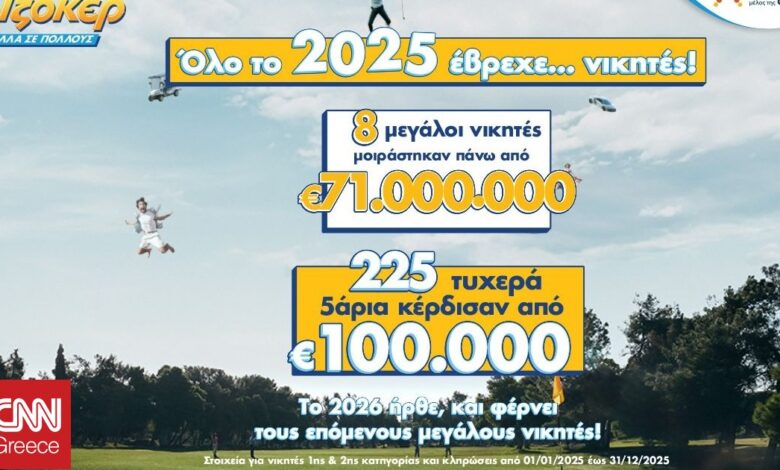 Το 2025 το ΤΖΟΚΕΡ έγραψε ιστορία με πολλά ρεκόρ, μεγάλες επιτυχίες και…βροχή από υπερτυχερούς. Κατά τη διάρκεια της χρονιάς που πέρασε, το δημοφιλές παιχνίδι άλλαξε τη ζωή 8 ανθρώπων, αφού η κληρωτίδα ανέδειξε στην πρώτη κατηγορία 8 μεγάλους νικητές που μοιράστηκαν πάνω από 71 εκατομμύρια ευρώ.