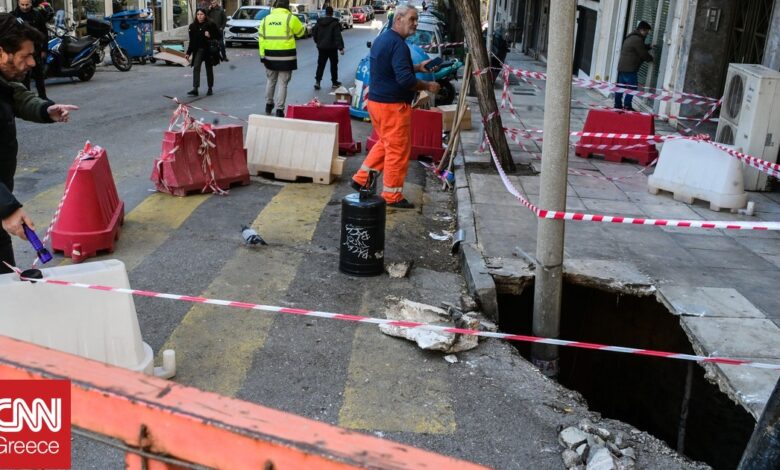 Σε απόσταση λίγων μέτρων γίνονται έργα του Μετρό και εξετάζεται αν σχετίζονται με την καθίζηση. Μηχανικοί που βρίσκονται στο σημείο τονίζουν ότι το συγκεκριμένο σημείο είχε μαζέψει πολλά φερτά υλικά.