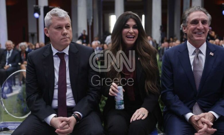 Ο υπουργός Ενέργειας των ΗΠΑ Chris Wright, η Πρέσβης των ΗΠΑ Kimberly Guilfoyle και ο υπουργός Εσωτερικών Doug Burgum στη Σύνοδο Διατλαντικής Συνεργασίας για την Ενέργεια στο Ζάππειο