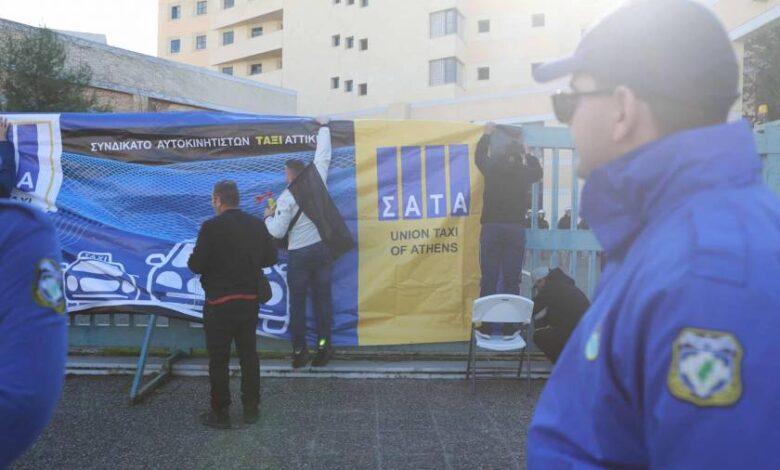 Κινητοποίηση οδηγών ταξί έξω από το Υπουργείο Μεταφορών