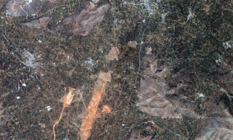 Εκεί, οι αλλαγές στη χρήση γης αποτυπώνονται πλέον με απόλυτη σαφήνεια στις πρόσφατες δορυφορικές απεικονίσεις: εκτάσεις που μέχρι πρότινος εμφανίζονταν ως αγροτικές έχουν μετατραπεί σε εργοτάξια, υποδομές και συνοδευτικές εγκαταστάσεις.