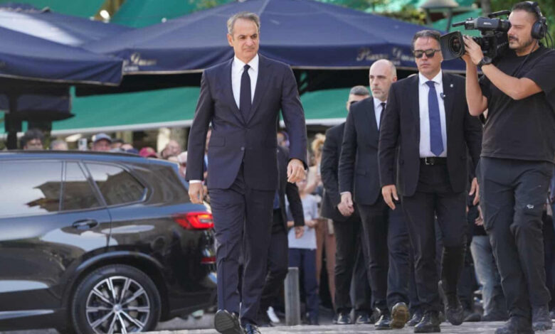 «Δεν είμαι εδώ μόνο ως φίλος και θαυμαστής του, αλλά έχω χρέος προς ένα σπουδαίο Έλληνα», είπε ο πρωθυπουργός, Κυριάκος Μητσοτάκης στον επικήδειό του στον Διονύση Σαββόπουλο.