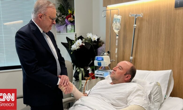 Ο πρωθυπουργός της Αυστραλίας Άντονι Αλμπανέζι επισκέφθηκε σήμερα, Τρίτη 16 Δεκεμβρίου, στο νοσοκομείο τον «ήρωα» της παραλίας Μπόνταϊ, τον Άχμεντ αλ Άχμεντ, ο οποίος επενέβη για να σταματήσει έναν από τους δράστες της πιο φονικής επίθεσης με πυροβόλα όπλα που έχει γνωρίσει η χώρα εδώ και δεκαετίες.
