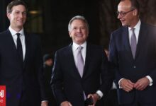 Σύμφωνα με τον κυβερνητικό εκπρόσωπο Στέφαν Κορνέλιους, δεν είναι ακόμη βέβαιο εάν οι δύο Αμερικανοί διαπραγματευτές, ο ειδικός απεσταλμένος του προέδρου Τραμπ Στιβ Γουίτκοφ και ο γαμπρός του Τζάρεντ Κούσνερ, θα συμμετάσχουν στη συνάντηση που θα πραγματοποιηθεί απόψε με τους Ευρωπαίους ηγέτες. Διευκρίνισε πάντως ότι έχουν προσκληθεί.