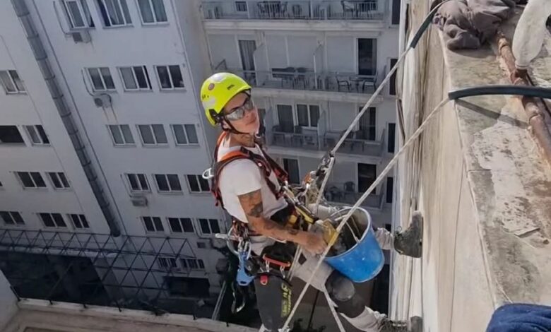 H Αγγελική δεν περιορίζεται μόνο στο να κρέμεται από ένα σχοινί, αλλά επωμίζεται όλο το βάρος μιας δουλειάς: από τα οικονομικά και τα υλικά, μέχρι την ασφάλεια της κατασκευής. «Όσο ασχολούμαι, μαθαίνω συνέχεια κάτι νέο, ο τομέας μου είναι πολύ μεγάλος. Διαχειρίζομαι πλέον τα πάντα στην δουλειά μου, από τα οικονομικά μέχρι την ασφάλειά μου και χαίρομαι με το πείσμα μου, το θαυμάζω», λέει, ενώ έχει ήδη στο βιογραφικό της εμβληματικά έργα, όπως την τοποθέτηση παραθύρων στον Πύργο του Πειραιά.