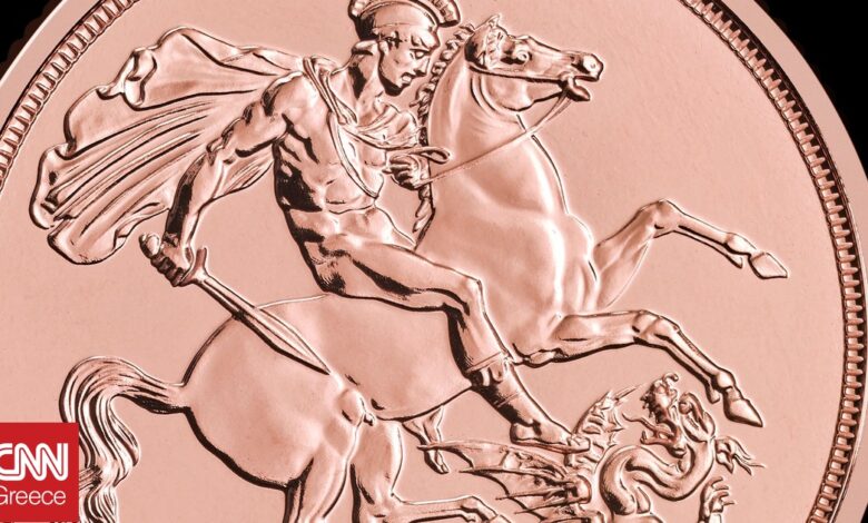 Το νόμισμα είναι καθαρότητας 22 καρατίων, φέρει την προτομή της Α.Μ. Βασιλιά Καρόλου Γ΄, καθώς και την εμβληματική μορφή του έφιππου Αγίου Γεωργίου που κατατροπώνει τον δράκoντα.