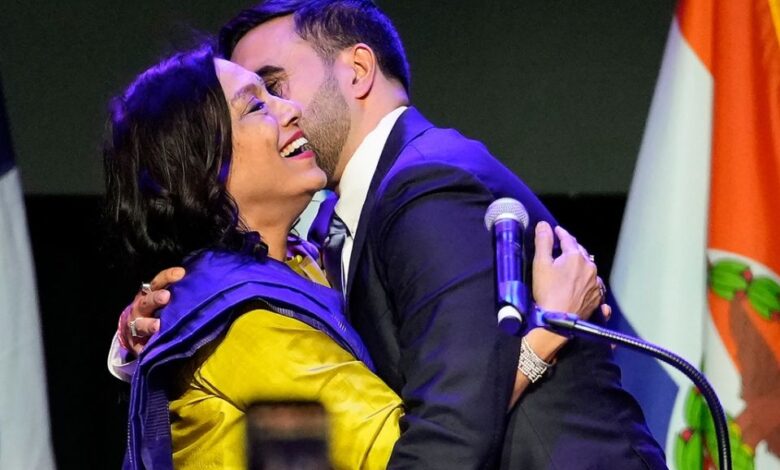 Ο νεοεκλεγείς δήμαρχος Ζοραν Μαμντάνι (δεξιά) χαιρετά τη μητέρα του Μίρα Νάιρ, την Τρίτη 4 Νοεμβρίου 2025, στη Νέα Υόρκη.
