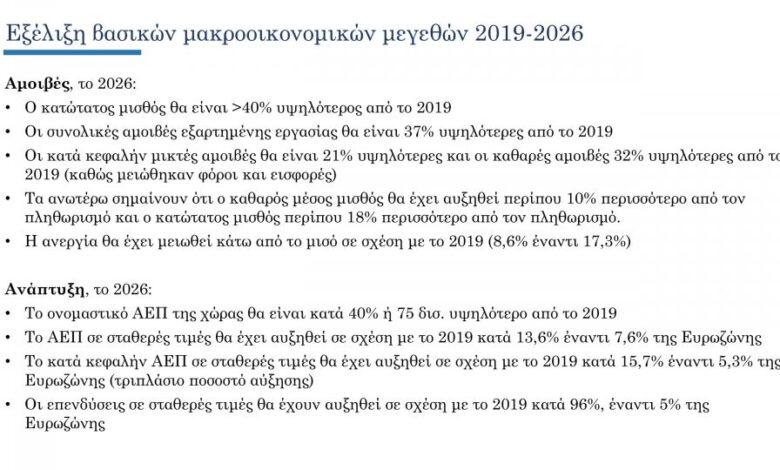 Σημειώνεται ότι οι εν λόγω εκτιμήσεις λαμβάνουν υπόψη την ολοκλήρωση του Ταμείου Ανάκαμψης και Ανθεκτικότητας εντός του 2026 και δεν περιλαμβάνουν πιθανές νέες παρεμβάσεις που θα ανακοινωθούν για τα έτη 2027-2029.
