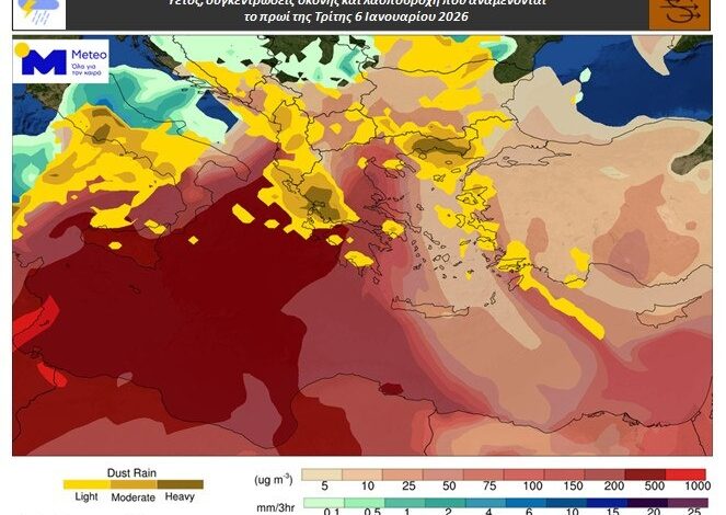 Η κατάσταση στη χώρα μας, σε ότι αφορά τους ανέμους στην μέση και κατώτερη τροπόσφαιρα, δεν αναμένεται να αλλάξει σημαντικά έως την Πέμπτη 8 Ιανουαρίου. Αποτέλεσμα είναι οι αυξημένες συγκεντρώσεις Αφρικανικής σκόνης στην ατμόσφαιρα και κατά συνέπεια η εκδήλωση λασποβροχών κατά τόπους.