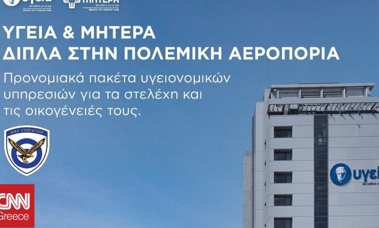 Με αίσθημα ευθύνης και με σαφή προσανατολισμό στην ποιότητα και την αξιοπιστία, το Νοσοκομείο ΥΓΕΙΑ προχωρά σε μια πρωτοβουλία στήριξης προς την Πολεμική Αεροπορία, προσφέροντας προνομιακά πακέτα παροχών προς τα εν ενεργεία και εν αποστρατεία στελέχη της, καθώς και τις οικογένειές τους.