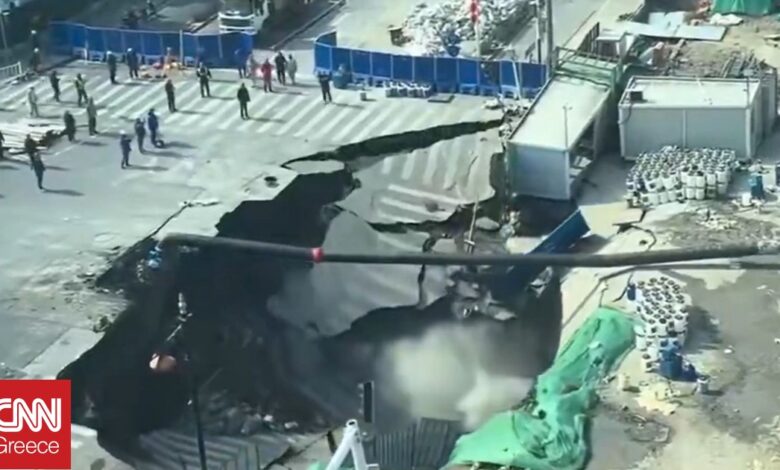Σαγκάη: Γιγαντιαία τρύπα στο οδόστρωμα «κατάπιε» εργοτάξιο