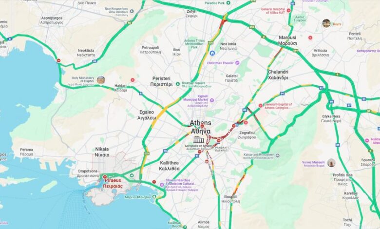 Συγκεκριμένα, καθυστερήσεις παρατηρούνται στη λεωφόρο Αλεξάνδρας και στα δύο ρεύματα, σε τμήματα της Μάρνης, της Αχιλλέως και της Κωνσταντινουπόλεως καθώς επίσης και στους δρόμους του Παγκρατίου.