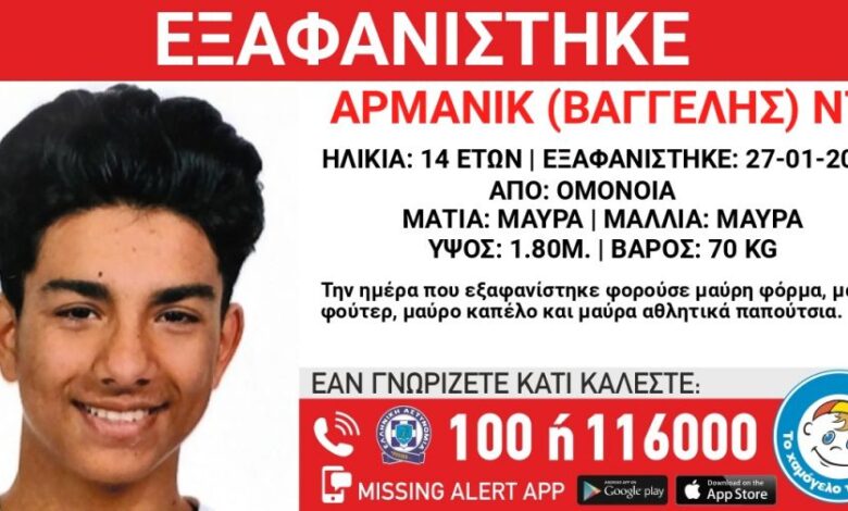 Συναγερμός για εξαφάνιση 14χρονου από την Ομόνοια