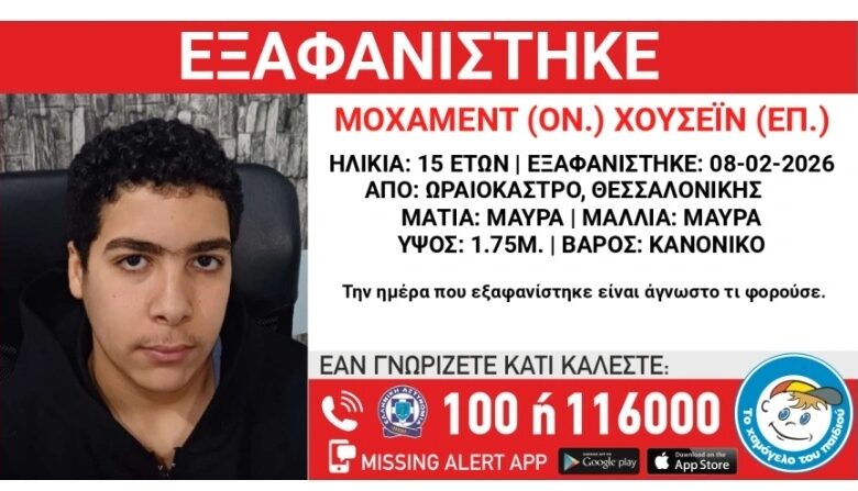 «Στις 11/02/2026, απογευματινές ώρες, εξαφανίστηκε από χώρο φιλοξενίας ασυνόδευτων ανηλίκων στην περιοχή του Ωραιοκάστρου της Θεσσαλονίκης, ο Σουχούντ (ον.) Μοχαμάντ (επ.) – Shuhoud (ον.) Mohammad (επ.), 14 ετών, Αιγυπτιακής καταγωγής. Το Χαμόγελο του Παιδιού ενημερώθηκε σήμερα, 12/02/2026 και προχώρησε άμεσα σε δημοσιοποίηση των στοιχείων του ανηλίκου, κατόπιν εισαγγελικής εντολής, καθώς ενδέχεται να συντρέχουν λόγοι οι οποίοι θέτουν την ζωή του σε κίνδυνο.