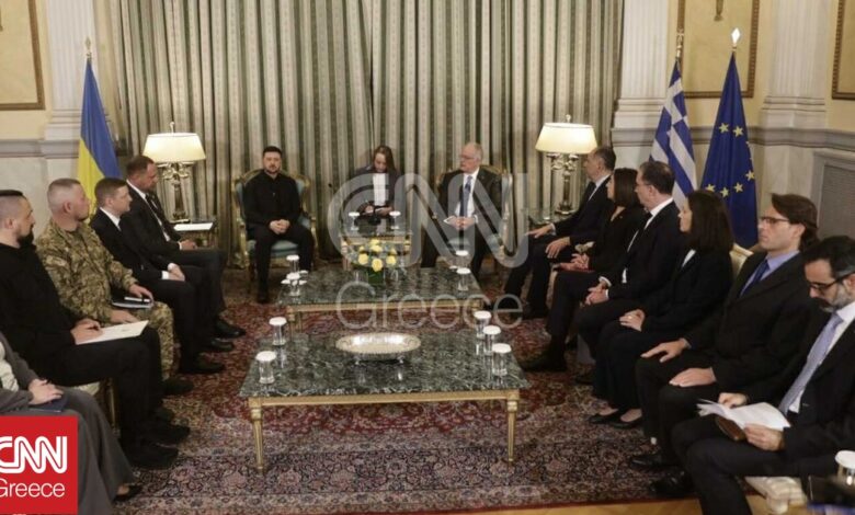 Με τον Πρόεδρο της Δημοκρατίας Κωνσταντίνο Τασούλα συναντήθηκε την Κυριακή (16/11) ο Ουκρανός πρόεδρος Βολοντίμιρ Ζελένσκι στο πλαίσιο της επίσκεψης εργασίας που πραγματοποιεί στην Αθήνα.
