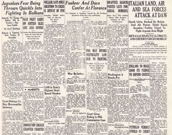 «Οι Έλληνες απωθούν τους Ιταλούς» γράφει το πρωτοσέλιδο της Fort Wayne Journal – Gazette της 1ης Νοεμβρίου 1940.