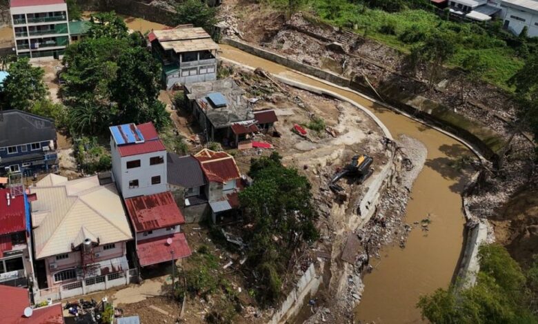 Κατεστραμμένα σπίτια κατά μήκος ενός ποταμού στο Μπακαγιάν, στην επαρχία Σεμπού, στις κεντρικές Φιλιππίνες